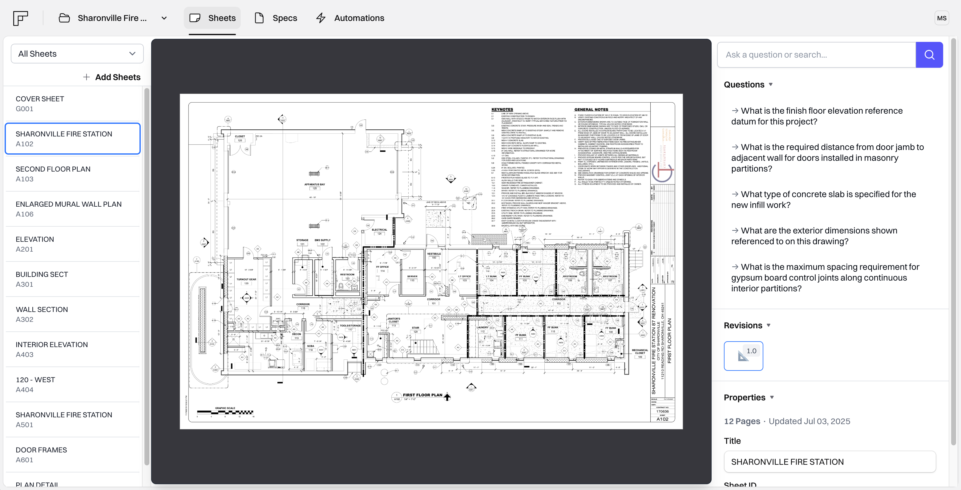 Using the latest computer vision techniques, we automatically extract key data from your drawings, like Sheet ID and Title, transforming unstructured files into usable information.